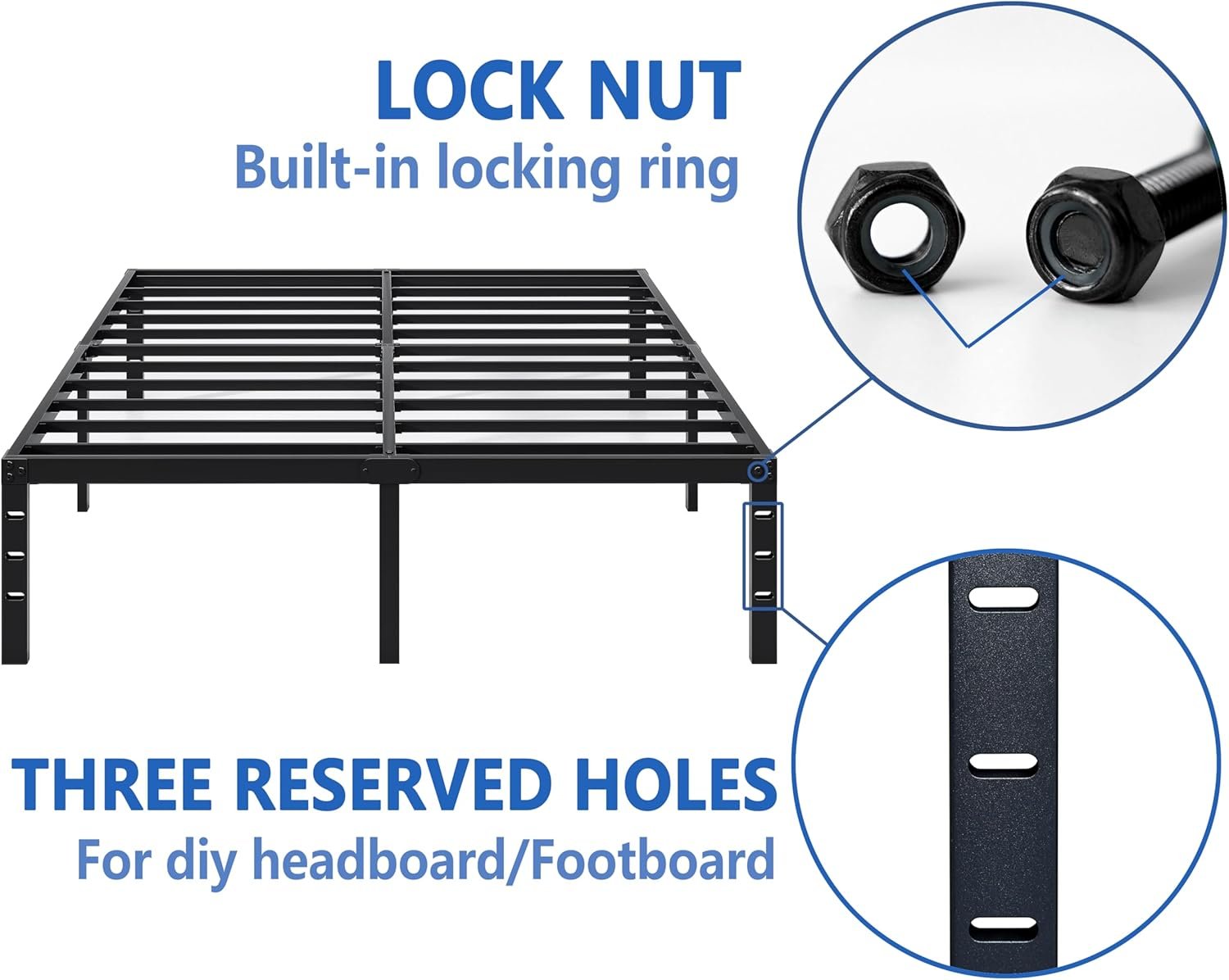 The NEW JETO Metal Bed Frame offers a clean, modern design built with a durable wrought-iron structure for long-lasting stability. Its reinforced steel slats and center support legs provide reliable strength while preventing noise and sagging. With 14 inches of under-bed clearance for convenient storage and a simple, tool-friendly assembly, this platform frame delivers both style and practicality for any bedroom.